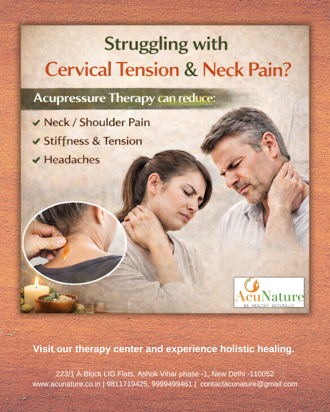 Acunature AcuNature - Acupressure & Natural Cure Clinic, Ashok Vihar Phase 1 Road, Pocket H, Phase 1, Ashok Vihar, New Delhi, Delhi, India +918048127415